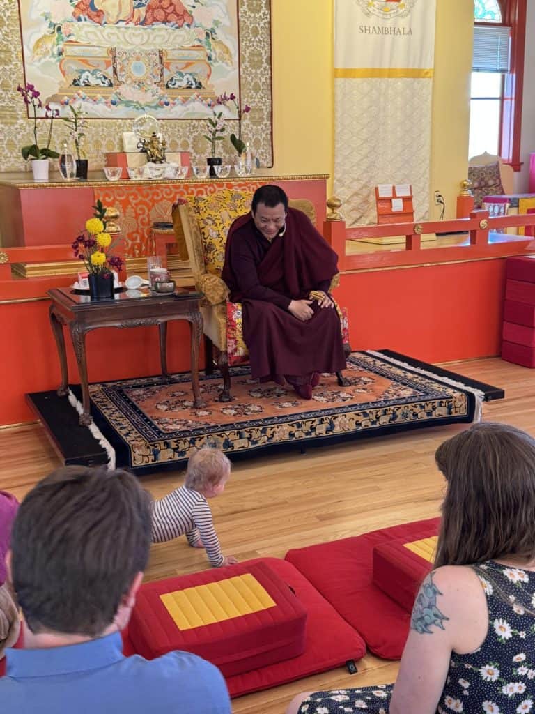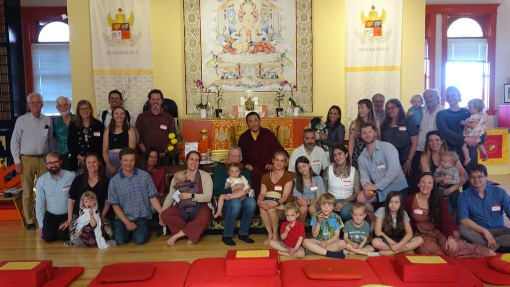 The first family day at Boulder Shambhala was a success – all smiles! Over 27 parents and their 11 adorable kids (infant to age 13) attended. We were able to host childcare at one end of the shrine room, while Rinpoche answered Q&As with parents at the other end of the room. Parents seemed especially happy for the opportunity to be part of a dharma talk, and to participate along side their children. We hope to repeat this successful event in the future!